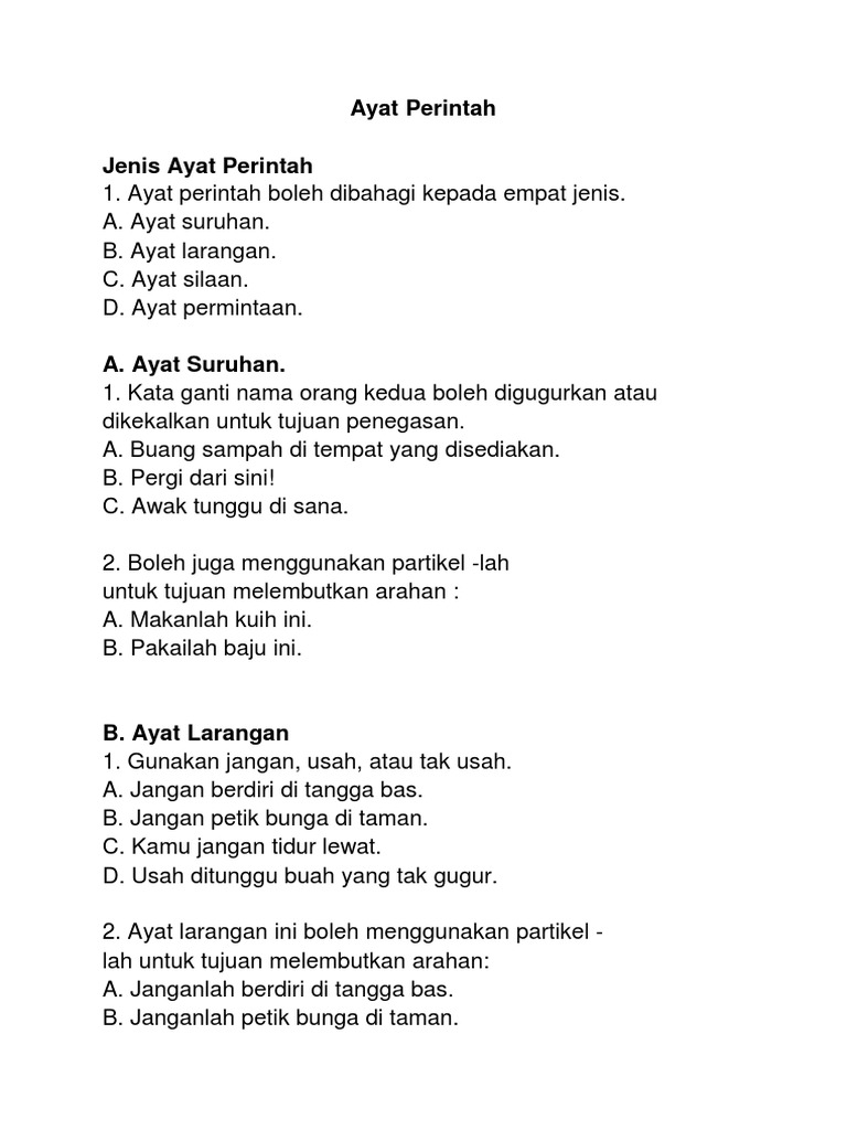 10112010 Contoh ayat larangan - Jangan duduk di sini Janganlah menangis Usah kau pedulikan dia. Dan insyaallah nanti akan saya masukkan ke dalam artikel di atas. 19022020 Hari Kantin diadakan bertujuan untuk mengumpul dana bagi membaiki kemudahan sekolah seperti tandas bilik-bilik khas dewan dan perpustakaan.